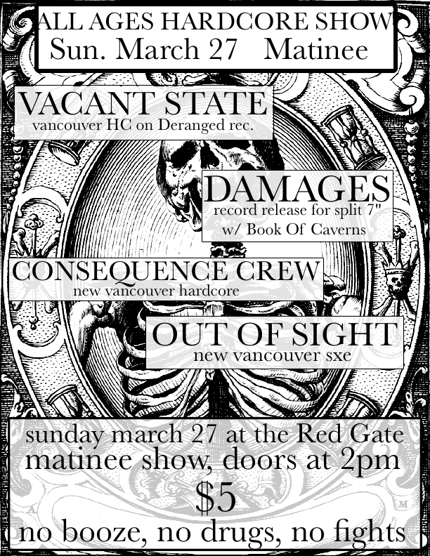 Matinee show: Vacant State, Damages, Consequence Crew, Out of Sight @ reddd gate Mar 27 2011 - Feb 3rd @ reddd gate