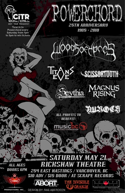Powerchord 25 Anniversary show: Woods of Ypres, Titans Eve, Scissortooth, Scythia, Magnus Rising, innertwyne @ Rickshaw Theatre May 21 2011 - Jan 14th @ Rickshaw Theatre