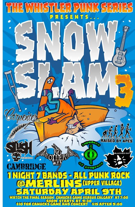 SNOWSLAM ( 3 ) 1 night 7 bands all punk rock / hockey night: Carpenter, slush, Raised By Apes, Cambridge, IMPEDERS OF PROGRESS, No Other Way, Blacked Out