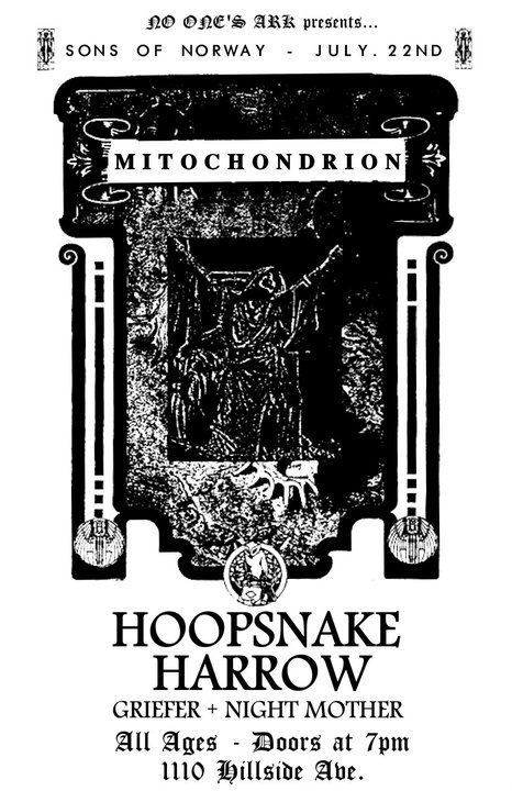 Mitochondrion, HOOPSNAKE, H.A.R.R.O.W., griefer, Night Mother @ Sons of Norway Jul 22 2011 - Jan 14th @ Sons of Norway
