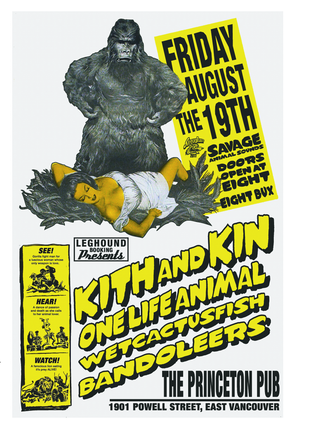 Kith & Kin, Bandoeers, Wetcactusfish, One Life Animal @ Princeton Pub Aug 19 2011 - Feb 24th @ Princeton Pub