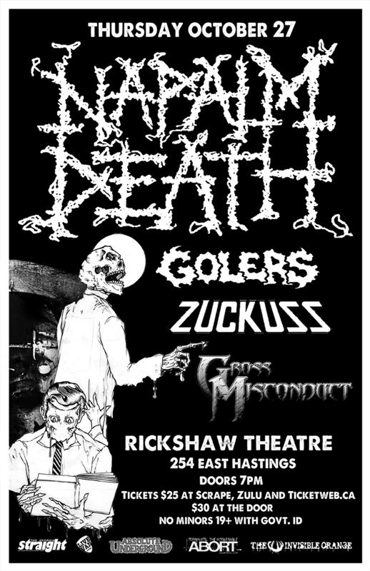 Napalm Death, The Golers, Zuckuss, Gross Misconduct @ Rickshaw Theatre Oct 27 2011 - Feb 6th @ Rickshaw Theatre