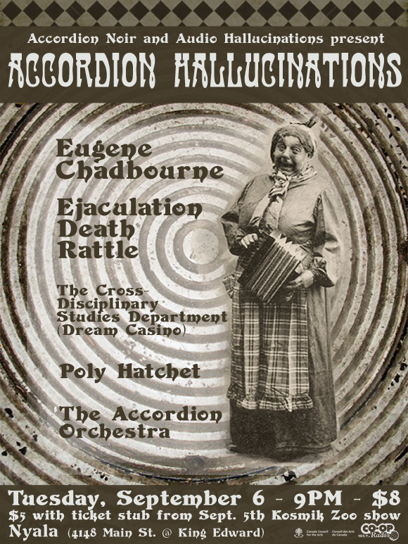 (or $5 with ticket stub from Sept. 5th show at Kosmik Zoo with Eugene Chadbourne)
