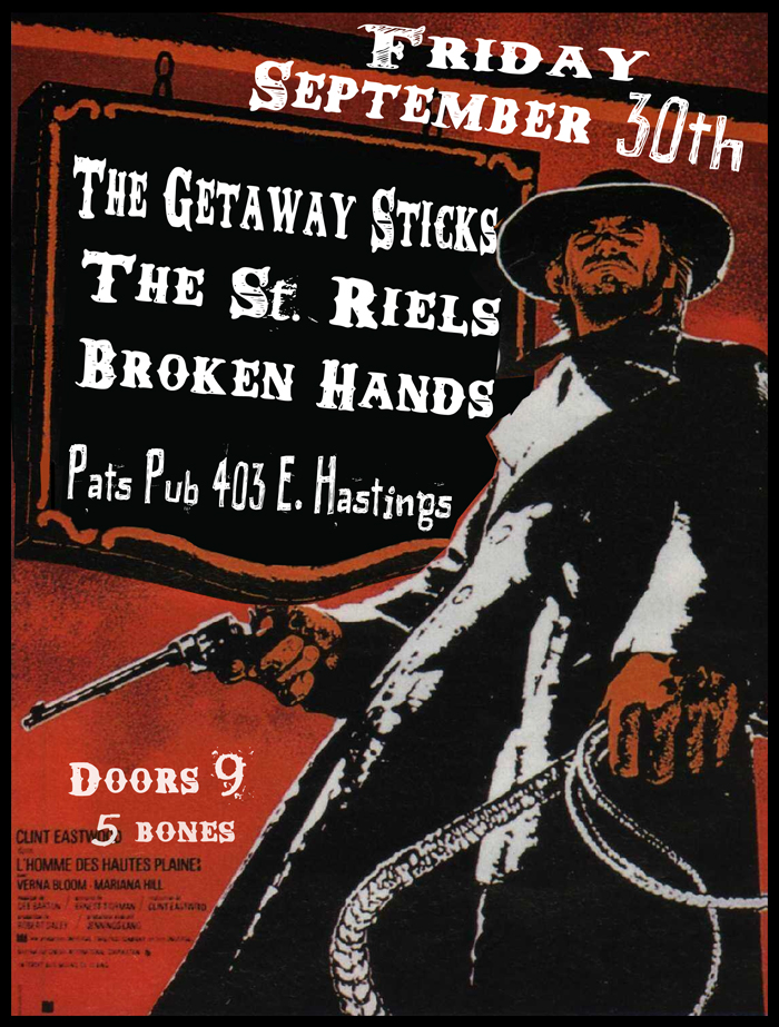 the Getaway Sticks, The Saint Riels, The Broken Hands @ Pat's Pub Sep 30 2011 - Feb 8th @ Pat's Pub