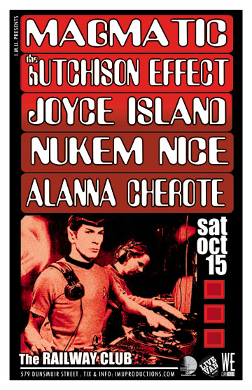 MAGMATIC - With a sound that's reminiscent of old soul vinyl mixed with a heavy dance jam band element, Magmatic is a four piece Vancouver-based ensemble. Between a rock solid drum and bass team, soulful organ and funky guitar, they can be counted on to get hips moving and get a party going. http://www.myspace.com/magmaticmixes