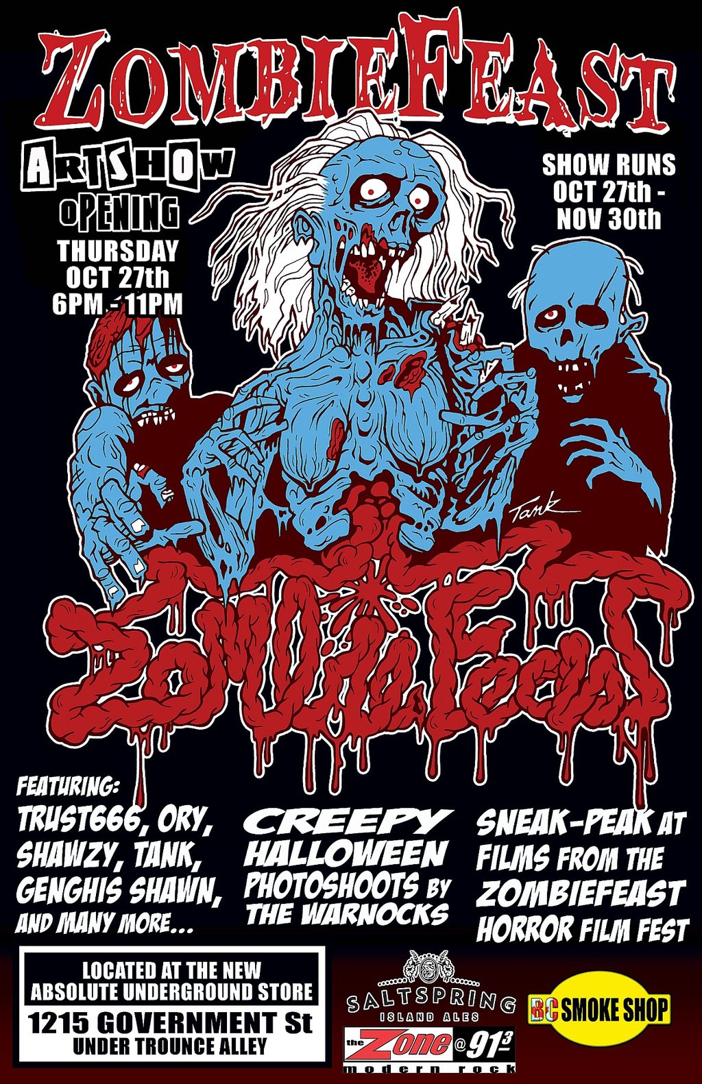 ZombieFeast Horror Artshow Opening Party!!!: Trust666, Ory, Tank, SHAWZY, Genghis Shawn, Lawrence Denvir, Photography by the Warnocks, And More...
