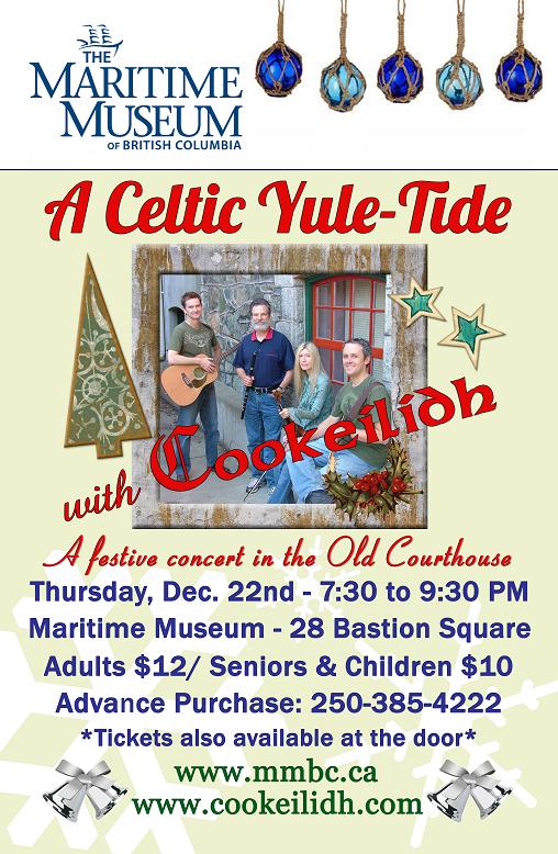 A special "after hours" holiday concert in the old 1889 Courthouse of the Maritime Museum featuring Celtic band "Cookeilidh".