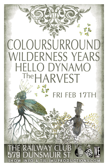 . Friday, February 17th IMU presents The HARVEST, COLOURSURROUND, HELLO DYNAMO & WILDERNESS YEARS @ The Railway Club, 579 Dunsmuir . Doors 9pm / Purchase advance tickets online @ http://www.imuproductions.com/tix