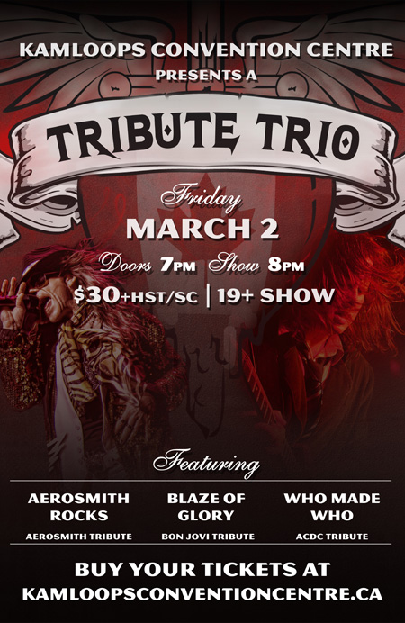 Tribute Trio - LIVE!: Blaze of Glory, Aerosmith Rocks, Who Made Who @ Kamloops Convention Center Mar 2 2012 - Feb 4th @ Kamloops Convention Center