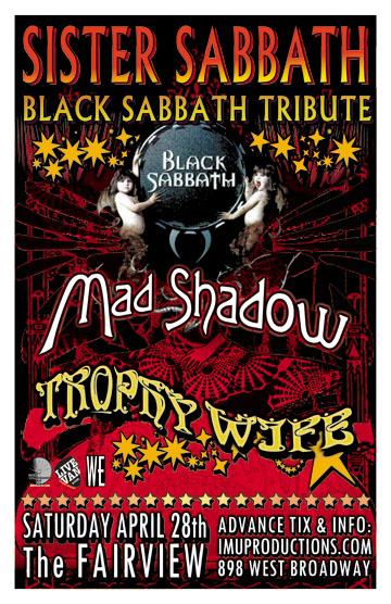 SISTER SABBATH - Formed in 2008, Sister Sabbath is different from the other Sabbath tribute bands, boasting a female singer who covers all the eras of Black Sabbath with ease. Their set list covers every angle of the band's vast career from their biggest hits to underground favorites, with an entertaining stage show featuring some of the city's finest musicians and a psychotic nun's outfit front and centre. Vancouver's new female-fronted Sabbath tribute is a force to be reckoned with! http://www.sistersabbath.com