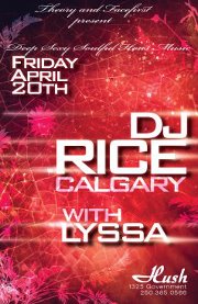 Though very proud to still use vinyl, DJ Rice embraces the use of MP3as it is quickly becoming the industry standard. The Internet has also brought another level to DJ Rice, he is very proud to be a member of Calgary Soul. This is a great tool for event listings, information on DJ's and it also brings free mixes to the interested public and loyal followers. Log on and listen or download until your hearts desire. DJ Rice is dedicated to those who come to listen to him and in return he plays his heart out to those who choose to listen.