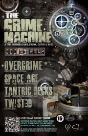 Ready for more from THE GRIME MACHINE?! In 2012 we carry forward to grimey tradition of this ever-awesome monthly series as we take you on an unpredictable and dark timewarp through bass music - dubstep, glitchhop, dnb, ragga, tech-hop, garage, crunk and all forms of the whomp & wobble! This super sexy low frequency dance infusion will have you a grimey sweaty puddle on the floor when it's through with you. Once you've entered the Grime Machine, there's no telling where we'll end up!! STARRING! (in order of appearance):