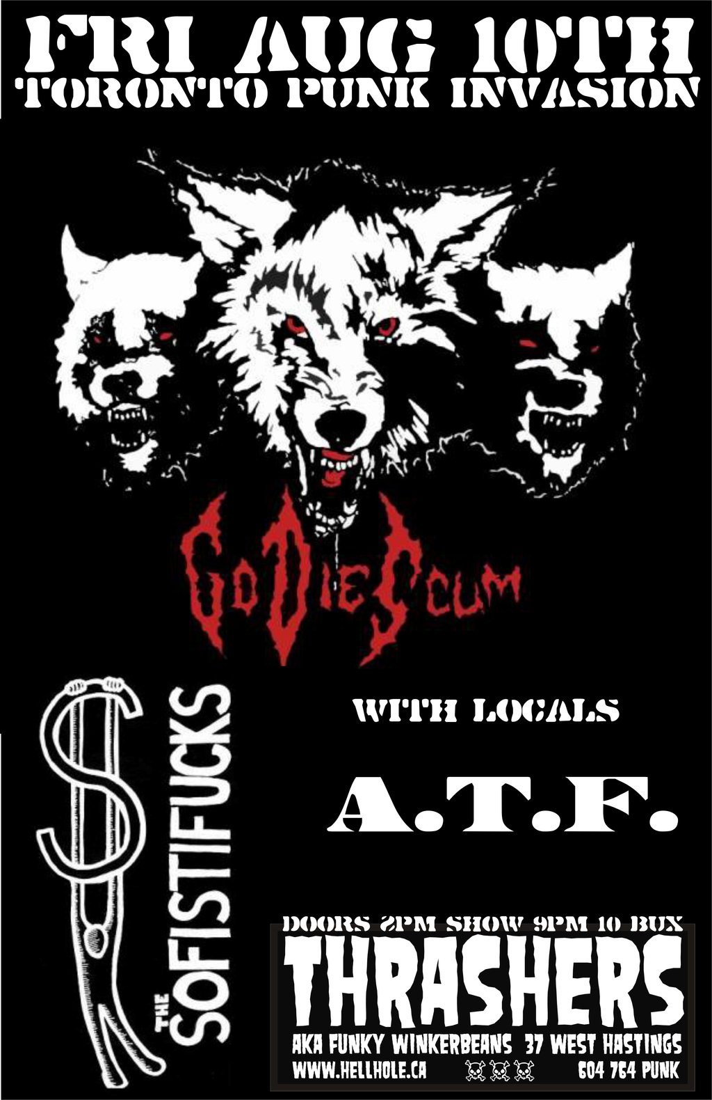 GO DIE SCUM, SOFISTAFUCKS, A.T.F., Contra Code @ Funky Winker Beans Aug 10 2012 - Jan 14th @ Funky Winker Beans