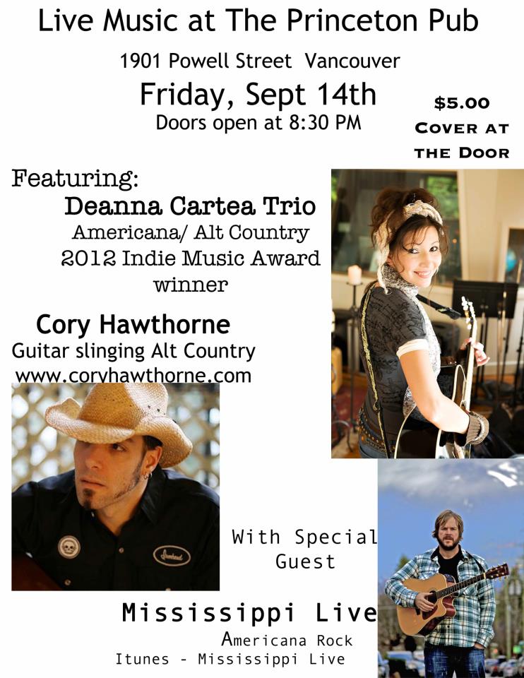 Connelly Farr, Deanna Cartea Band, Cory Hawthorne @ Princeton Pub Sep 14 2012 - Jan 14th @ Princeton Pub