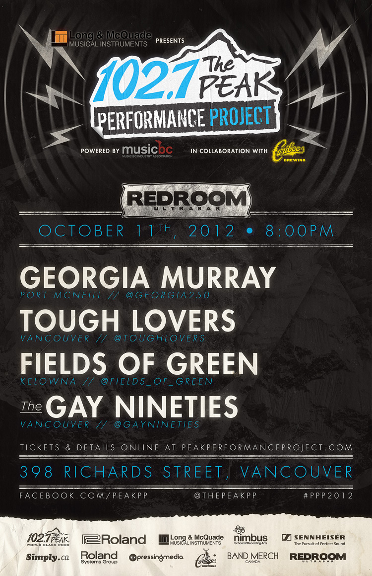 Long & McQaude musical intruments PRESENTS 100.5 THE PEAK PERFORMANCE PROJECT NIGHT #4 Powered by Music BC & in Collaboration with Cariboo Brewing Featuring: Georgia Murray, Tough Lovers, Fields of Green, Gay Nineties