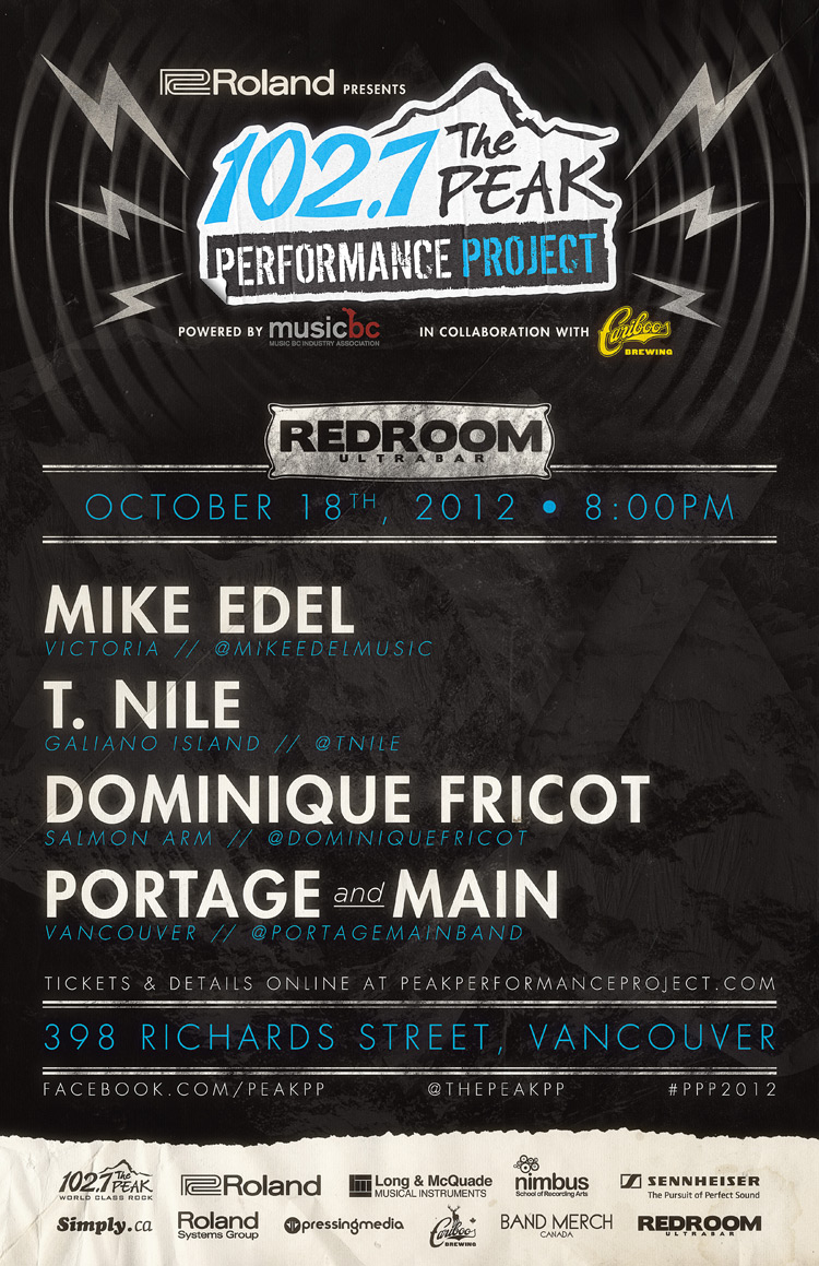 ROLAND PRESENTS 100.5 THE PEAK PERFORMANCE PROJECT NIGHT #5 Powered by Music BC & in Collaboration with Cariboo Brewing Featuring: Mike Edel, Tamara Nile, Dominique Fricot, Portage and Main