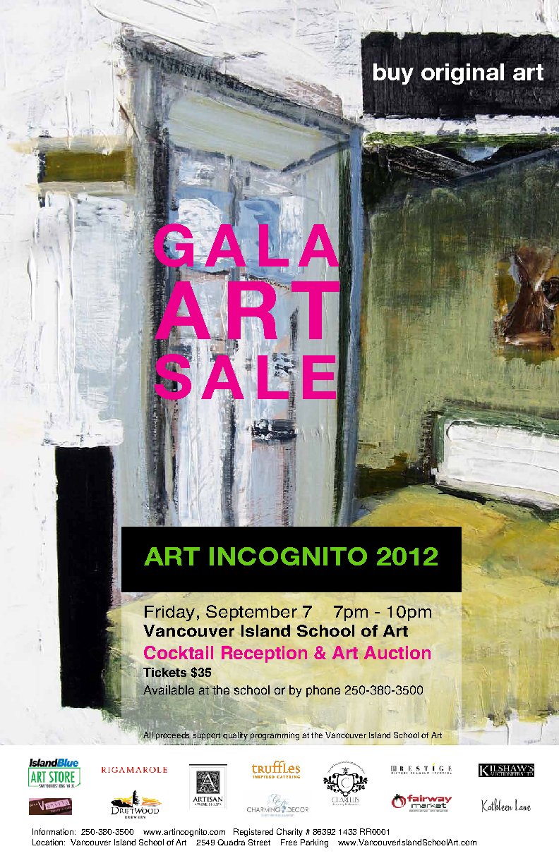 Vancouver Island's largest auction of contemporary art and is now in its seventh year. This gala event is a fundraiser for the Vancouver Island School of Art. Event includes a silent auction with a live auction component as well as a cocktail reception including a wine, beer and martini bar and an excellent array of delectable savory and sweet edibles and music! This is a very fun way to start or enhance your collection of original contemporary art by local artists.