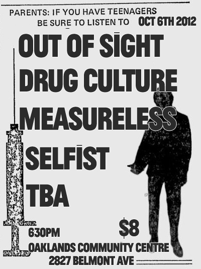 Out Of Sight are here again after a long year of not playing the island. They are bringing Tacoma's Drug Culture with them. Check out this $8 All Ages Hardcore show!