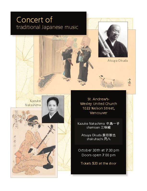 Concert of traditional Japanese music: Kazuko Nakashima, Atsuya Okuda @ St. Andrew's-Wesley Church Oct 30 2012 - Feb 3rd @ St. Andrew's-Wesley Church