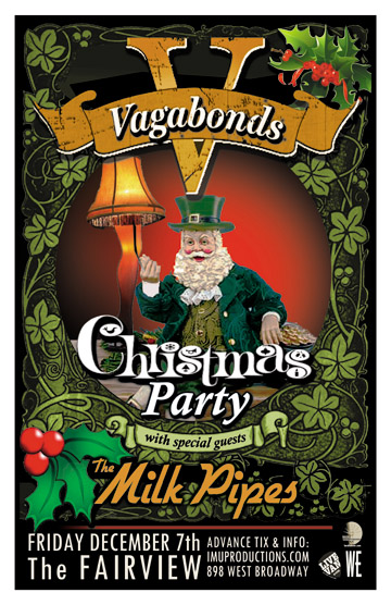 . Friday, December 7th MU presents VAGABONDS CHRISTMAS PARTY w/ special guests The MILK PIPES @ The Fairview, 898 West Broadway . Doors 9pm / Purchase advance tickets directly online @ http://www.imuproductions.com/tix