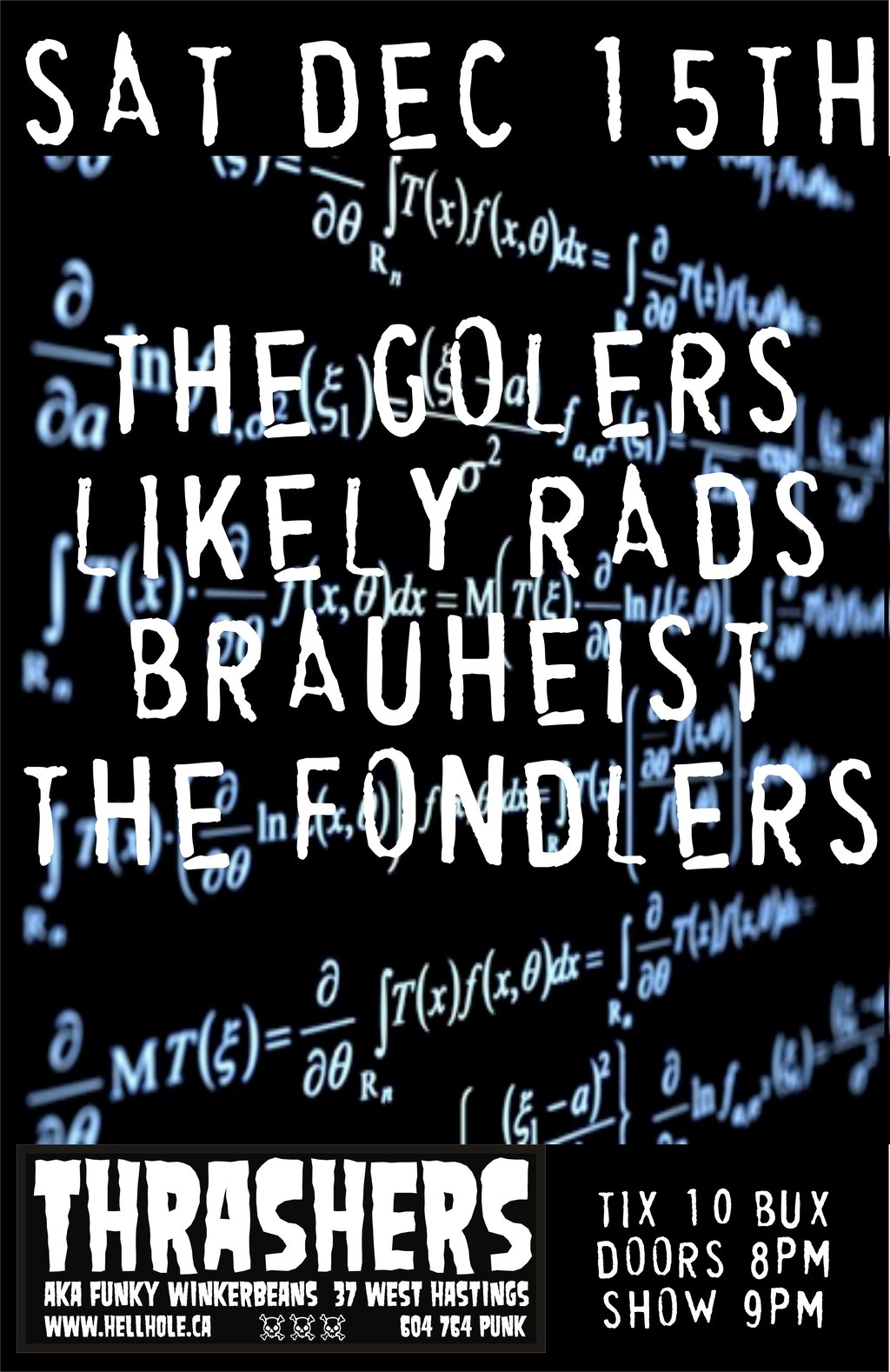 The Golers, The Likely Rads, Brauheist , The Fondlers