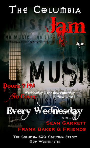 Join Sean Garrett, Frank Baker & Friends as they host the Wednesday Nite Jam at The Columbia Theatre in New Westminster.