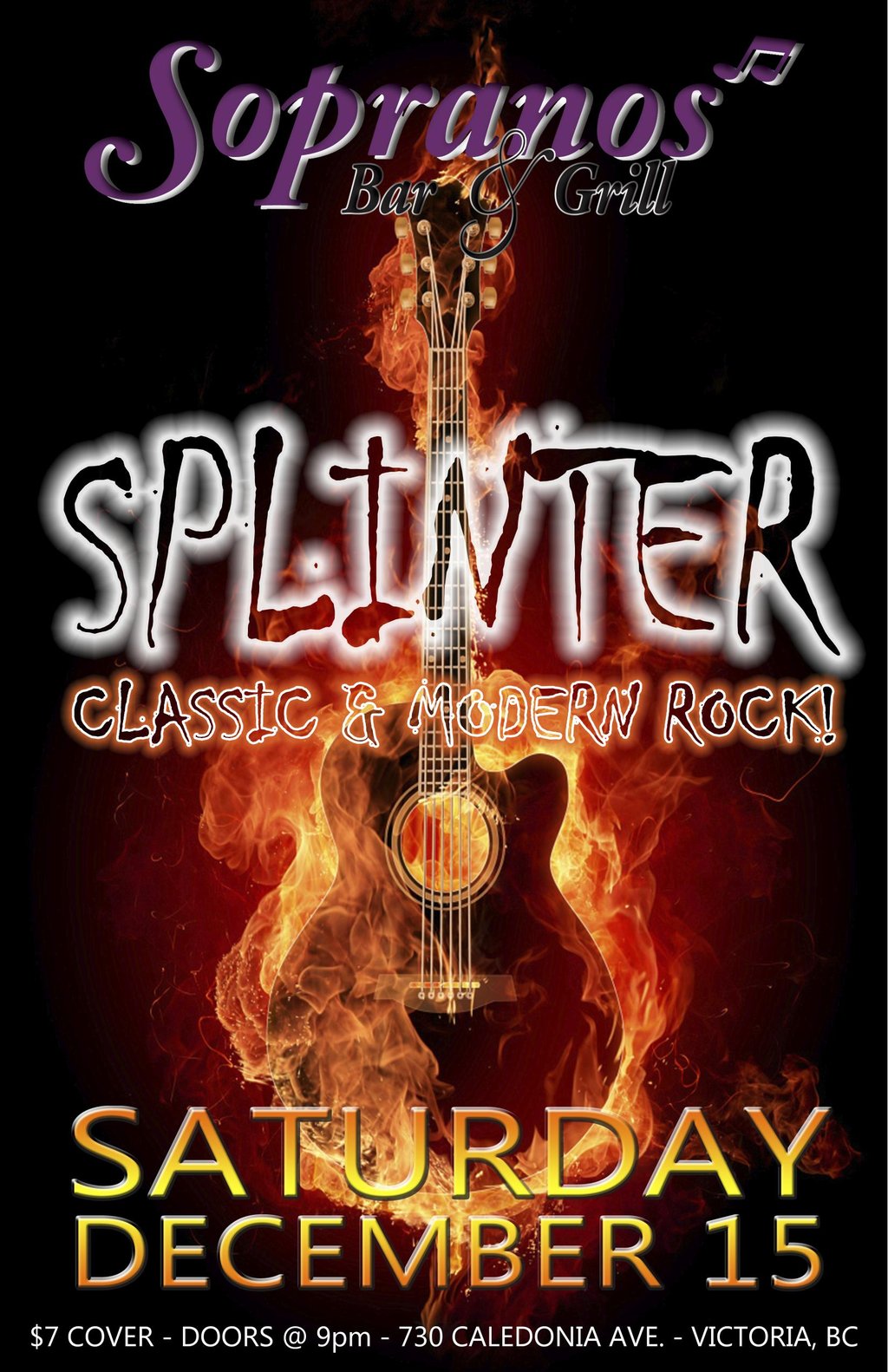 Get rockin Hard with victoria's Best band: Splinter @ Soprano's Dec 15 2012 - Feb 3rd @ Soprano's