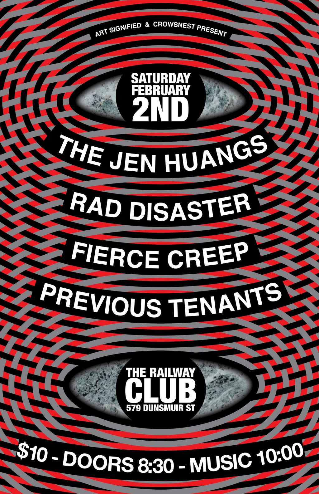 The Jen Huangs, Rad Disaster, Fierce Creep, Previous Tenants @ Railway Club Feb 2 2013 - Feb 5th @ Railway Club