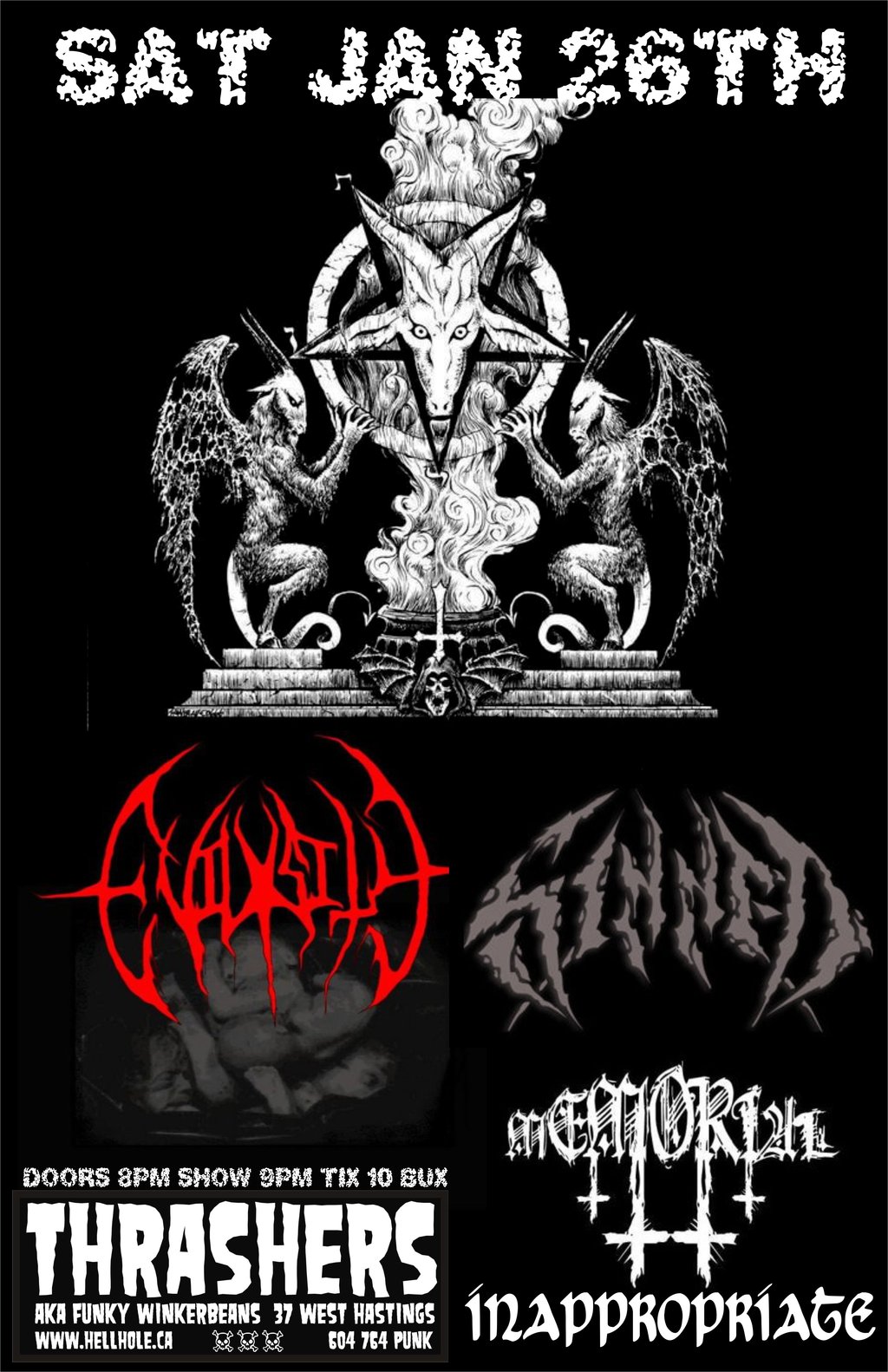Evilosity, Sinned, Memorial, inappropriate @ Funky Winker Beans Jan 26 2013 - Jan 14th @ Funky Winker Beans