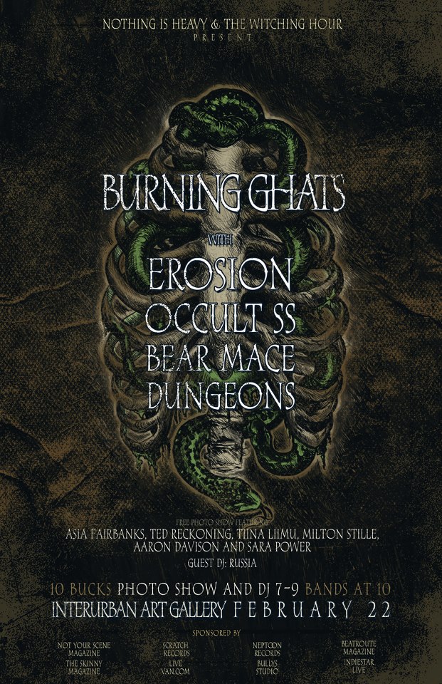 Burning Ghats, Erosion, Occult SS, Bear Mace, Dungeons @ Interurban Gallery Feb 22 2013 - Feb 3rd @ Interurban Gallery