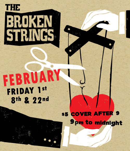 Victoria's most diverse cover band, The Broken Strings play a wide variety of classics from Tom Petty and Ryan Adams to the Talking Heads and Michael Jackson $5 after 9.