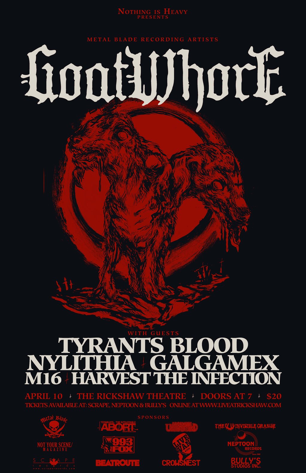 Goatwhore, Tyrants Blood, Galgamex, Nylithia, Harvest The Infection @ Rickshaw Theatre Apr 10 2013 - Feb 4th @ Rickshaw Theatre