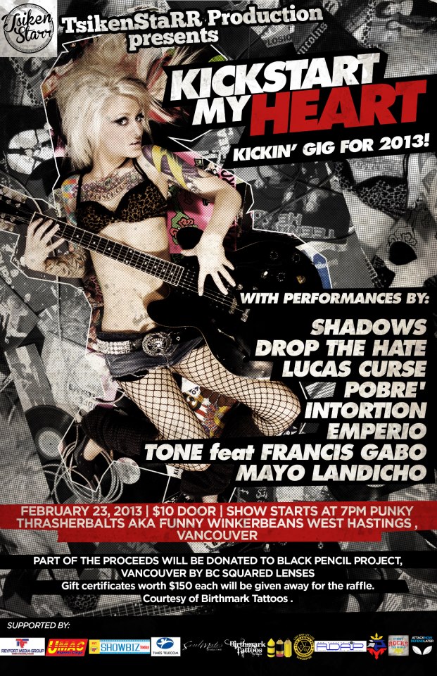 Come join us for TskikenStaRR's first event of the year, as we welcome the coming of 2013 and post Valentine's day. Performances from various artists and rock bands with different genre of music will be showcased. Let's rock and roll as long as we live.