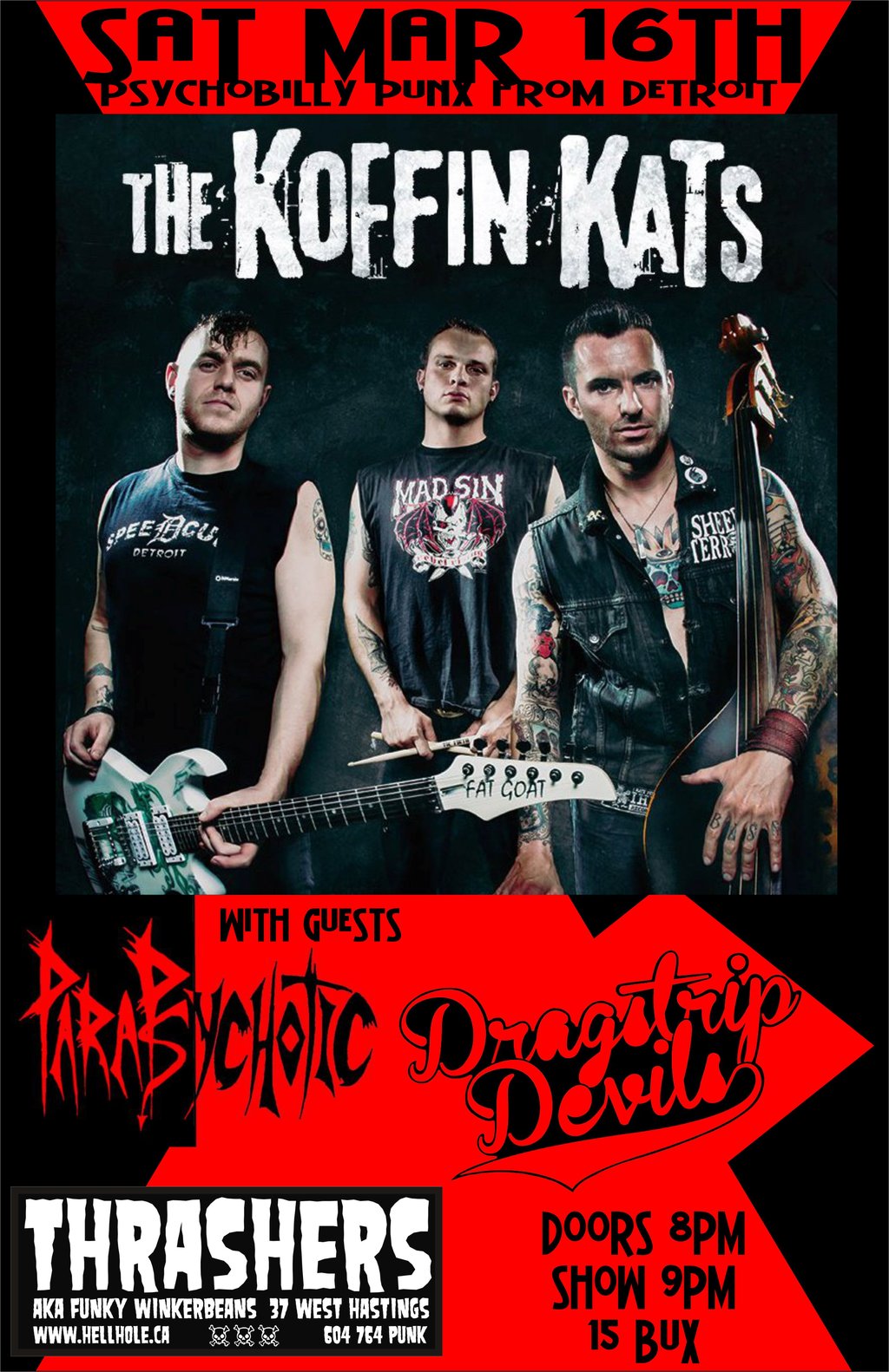 PSYCHOBILLY PUNX FROM DETROIT!!~:  Koffin Kats, PARAPSYCHOTIC, THE DRAGSTRIP DEVILS @ Funky Winker Beans Mar 16 2013 - Dec 27th @ Funky Winker Beans