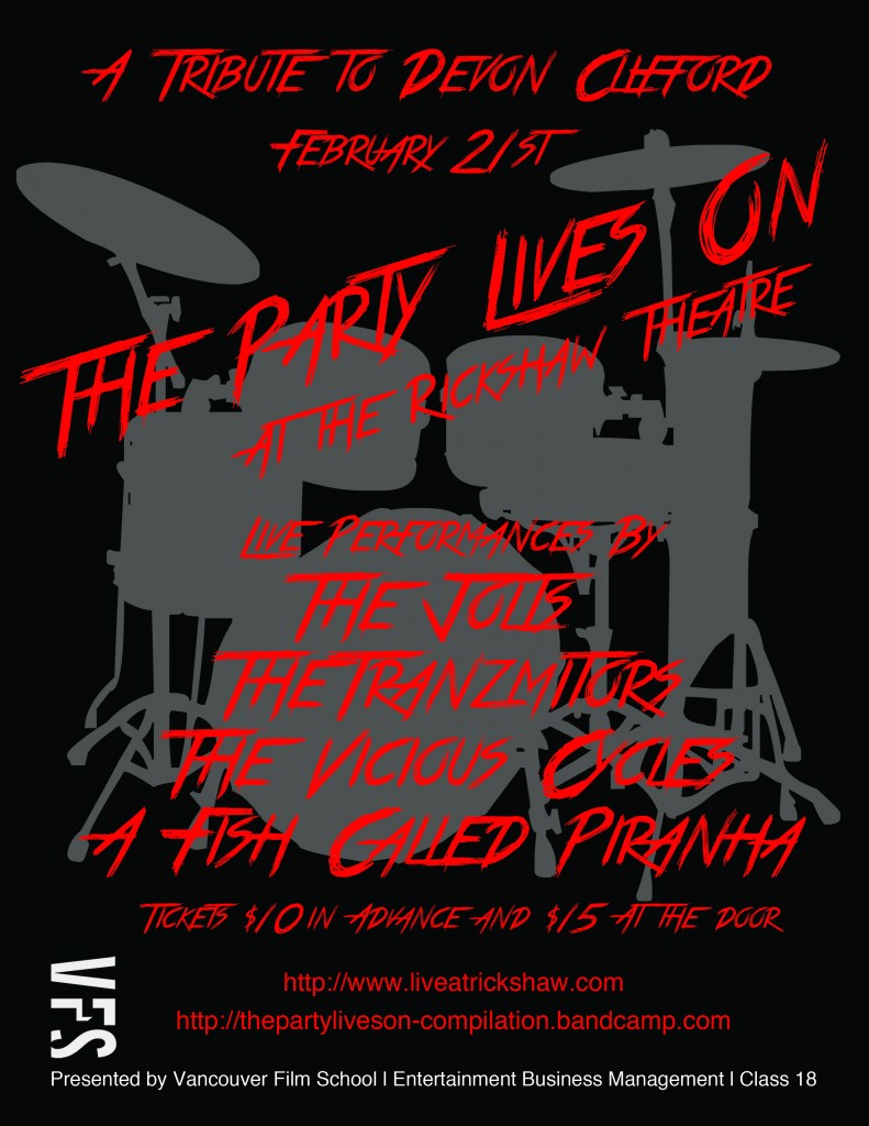 Two years ago on April 18th, Abbotsford band You Say Party experienced a grave tragedy. Their drummer Devon Clifford had an unexpected brain hemorrhage and collapsed on stage and died at the Rickshaw Theatre in Vancouver. After his death, his family wanted to keep Devon’s spirit alive, so they did it in the best way they knew how. They created the Devon R.B. Clifford Memorial Foundation, which raises money to provide music education for less fortunate youth.