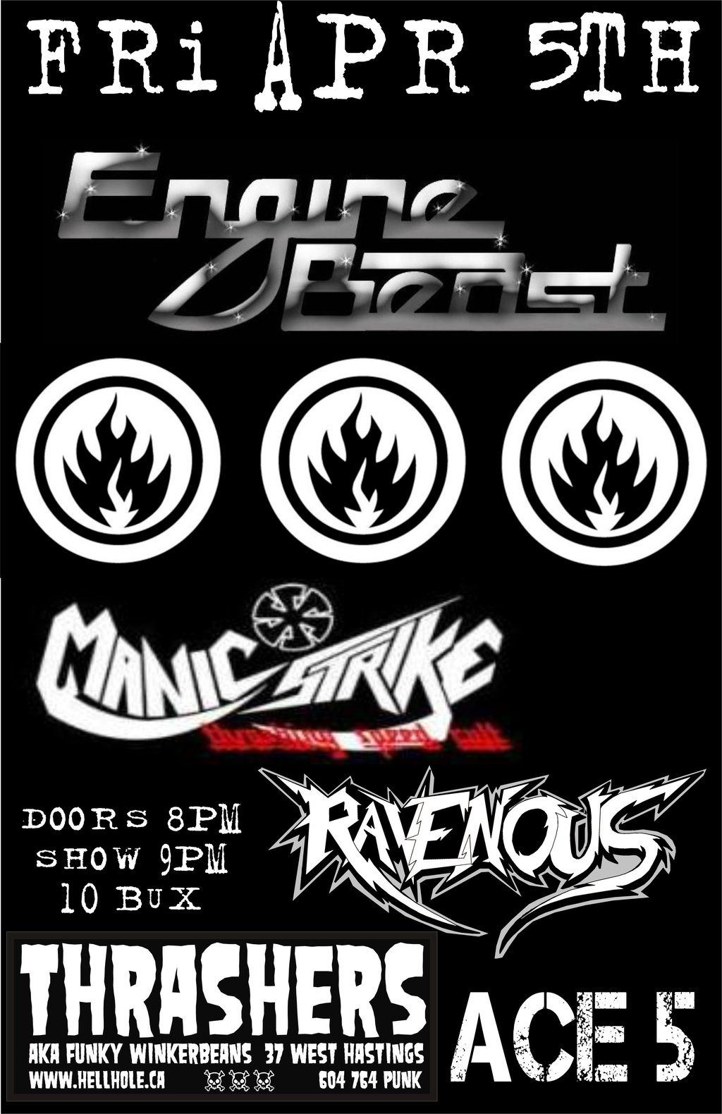 THRASH ATTACK!: ENGINE BEAST, Manic Strike, Ravenous, ACE 5 @ Funky Winker Beans Apr 5 2013 - Dec 27th @ Funky Winker Beans