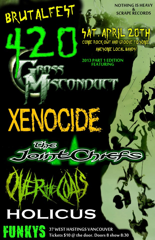 BRUTALFEST 2013: Gross Misconduct, Xenocide, The Joint Chiefs, Over the Coals, Holicus @ Funky Winker Beans Dec 31 1969 - Feb 4th @ Funky Winker Beans
