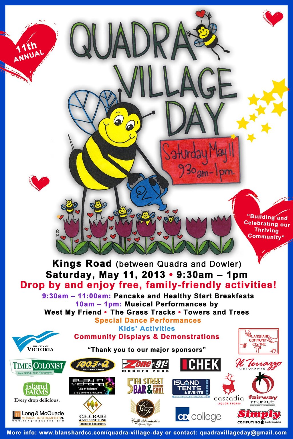 Join us for the 11th annual Quadra Village Day, a FREE, fun, all-ages event with activities for children and teens, two breakfasts, and music and dance performances.: West My Friend, The Grass Tracks, Towers and Trees