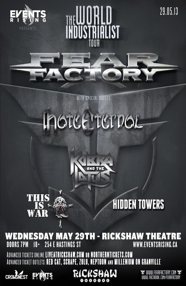 Fear Factory, Hate Eternal, Kobra & The Lotus, This is War, Hidden Towers @ Rickshaw Theatre May 29 2013 - Jan 14th @ Rickshaw Theatre