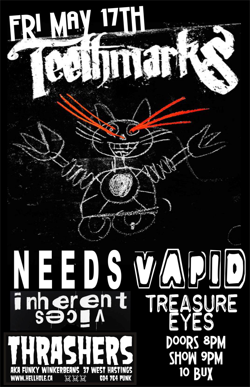TEETHMARKS (CANCELLED), Needs, Vapid, Inherent Vices , TREASURE EYES @ Funky Winker Beans May 17 2013 - Feb 3rd @ Funky Winker Beans