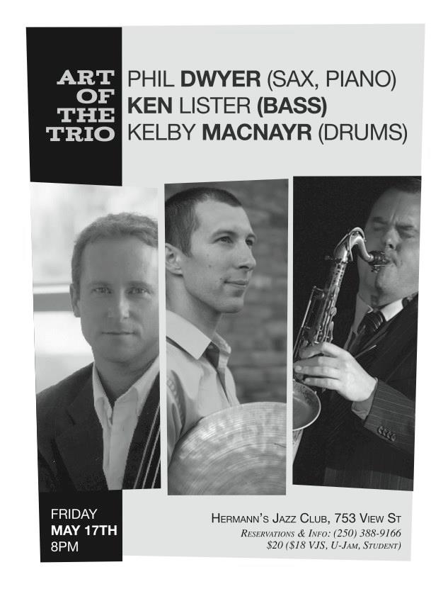 Legendary Canadian saxophonist/ pianist and multi-Juno Award-winner PHIL DWYER joins acclaimed bassist KEN LISTER & renowned drummer KELBY MACNAYR for a night of deeply swinging, edge-of-your seat trio music!!!
