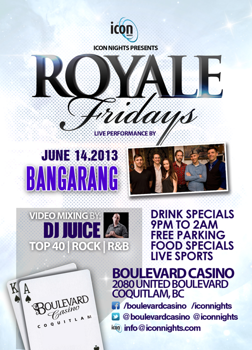 Bangarang  @ Boulevard Casino (Harley-Davidson Stage) Jun 14 2013 - Feb 24th @ Boulevard Casino (Harley-Davidson Stage)