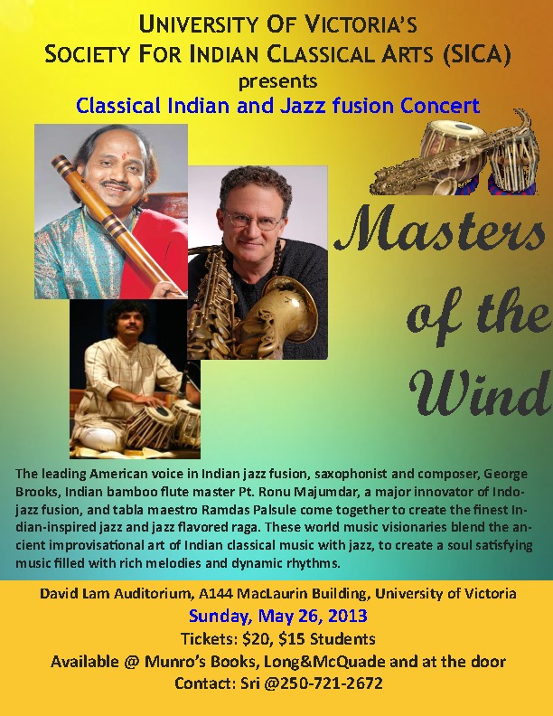 Masters of the Wind" An Evening of Indian (Hindustani) Classical Music and Jazz Fusion Concert: Pandit Ronu Majumdar (Bansuri), Geroge Brooks (Saxophone), Pandit Ramdas Palsule (Tabla)