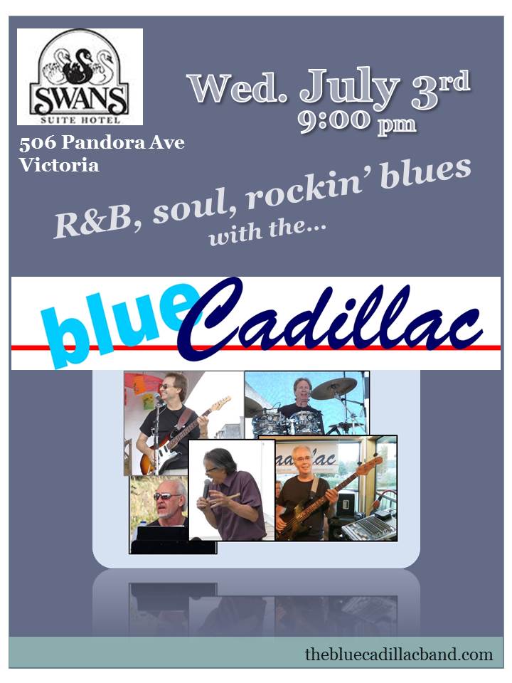 The Blue Cadillac Band brings an up-tempo mix of the blues that will rock your blues away! Features smokin’ guitar stylings, powerful vocals and harmonies. BCB hits the stage at Swan's at 9 pm