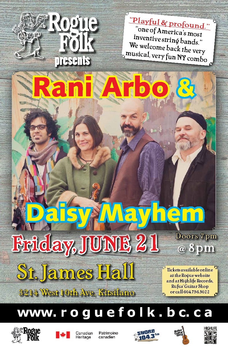 Rani Arbo & daisy mayhem @ St. James Community Hall Jun 21 2013 - Dec 26th @ St. James Community Hall