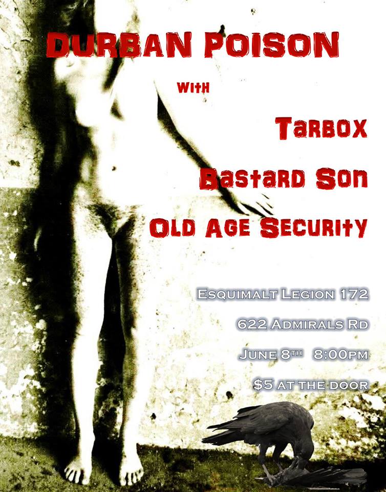 Durban Poison.: Durban Poison, Tarbox, Bastard Son, OLD AGE SECURITY @ Esquimalt Legion Jun 8 2013 - Feb 25th @ Esquimalt Legion