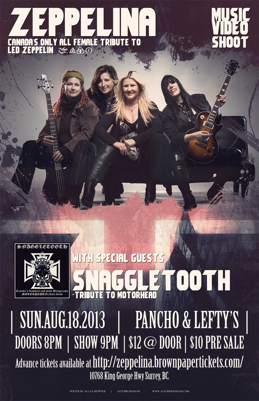 Zeppelina, Canada’s Only All Female Tribute to Led Zeppelin, will be filming their music video on August 18, 2013 at Pancho and Leftys 10768 King George Highway, Surrey, BC