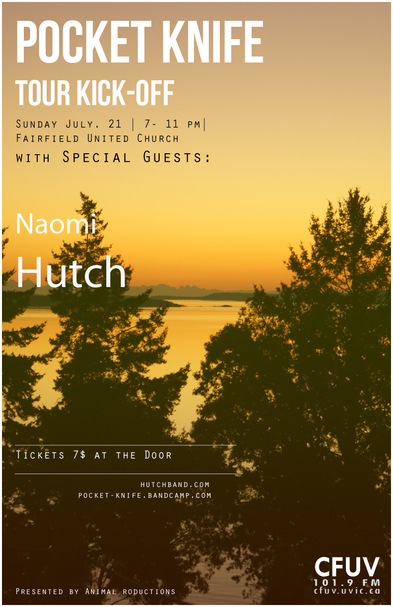 Pocket Knife Tour Kick-Off Show!: Pocket Knife, Hutch, Niaomi & Carol @ Fairfield United Church Jul 21 2013 - Mar 20th @ Fairfield United Church