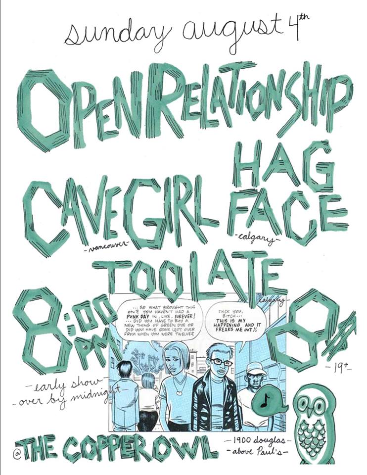 Hag Face, OPEN RELATIONSHIP, Too Late, Cave Girl @ Copper Owl Aug 4 2013 - Feb 3rd @ Copper Owl