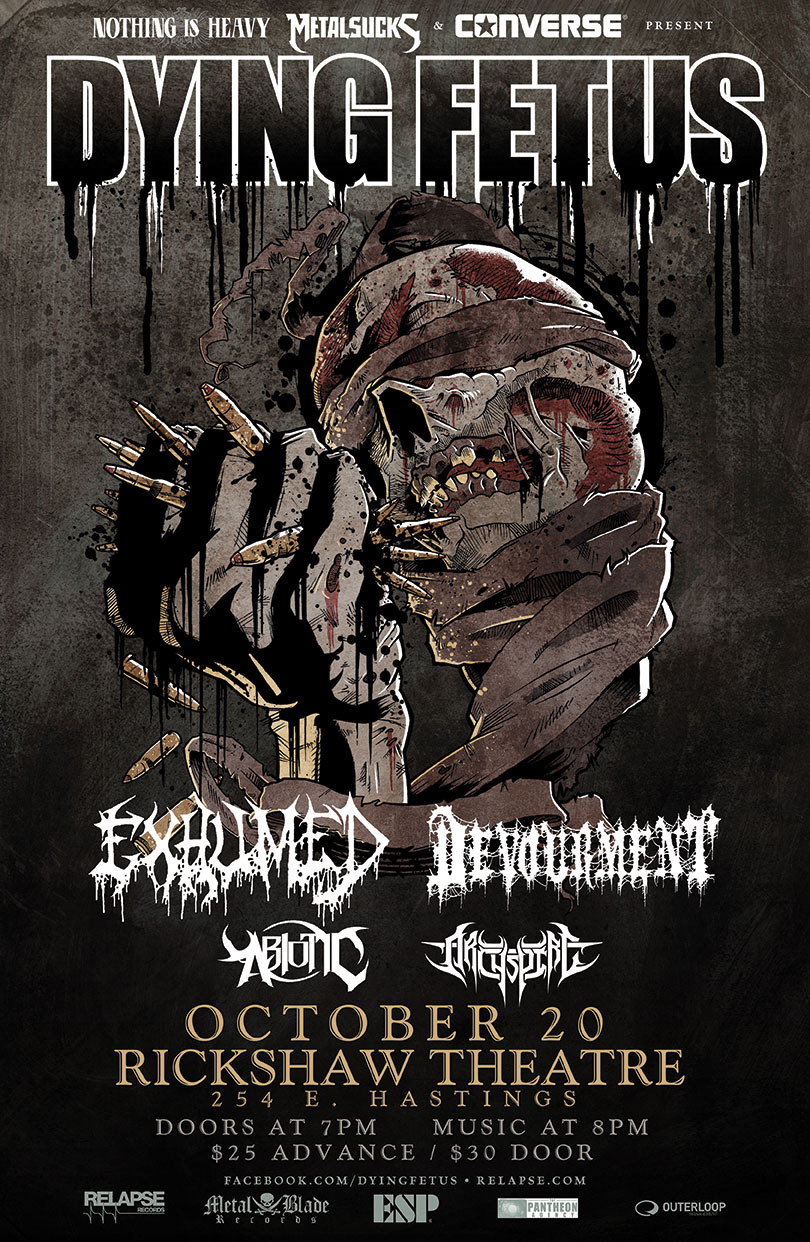 Dying Fetus, Exhumed, Devourment (CANCELLED EARLY), Abiotic, Archspire @ Rickshaw Theatre Oct 20 2013 - Feb 24th @ Rickshaw Theatre